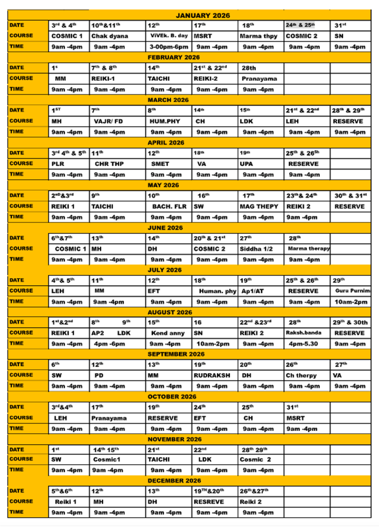 | CHR | CHROMO THERAPY | RD | RUDRAKSHA HEALING |